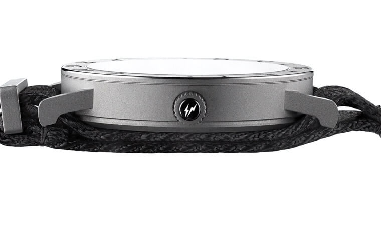 ▲錶殼採用噴砂不鏽鋼,錶冠上則是放上Fragment Design的閃電標誌。