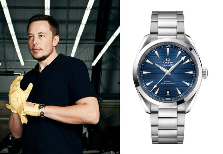 除了泰格豪雅,他偶爾也會佩戴歐米茄的Aqua Terra,這款錶的特色如面盤的甲板紋、搭載大師天文台認證機芯,同時底蓋也是品牌新版的設計,必需用專用開蓋器才能開啟底蓋。Aqua Terra有38mm和41mm兩種錶徑版本,推測馬斯克戴的是41mm,而這款不鏽鋼手錶的定價(NT$ 188,000)對馬斯克來說簡直如同零錢般,但他似乎覺得能看時間、又是不錯、有口碑的品牌就能接受了,並沒有刻意追求一些更高端、複雜或前衛的頂級手錶,而其實從馬斯克得知自己成為世界首富的回應”How strange”、”Well, back to work...”中也可以看出他對物質、名聲看淡的個性,畢竟這名新任世界首富當前最想做的事是要帶人類移民火星,至於手錶貴不貴重嘛,這似乎不是他會特別關心的事。