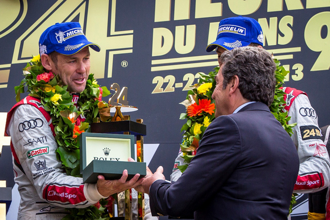 勞力士自2001年起,即成為法國利曼(Le Mans) 24小時耐力賽的官方計時夥伴,此享譽盛名的賽事已於日前圓滿落幕。來自德國的AUDI車隊在最受矚目的LMP1組別擊敗勁敵日本豐田,奪得2013年的冠軍,更可獲得一只勞力士蠔式恆動迪通拿手錶(Rolex Oyster Perpetual Cosmograph Daytona)。