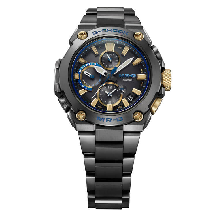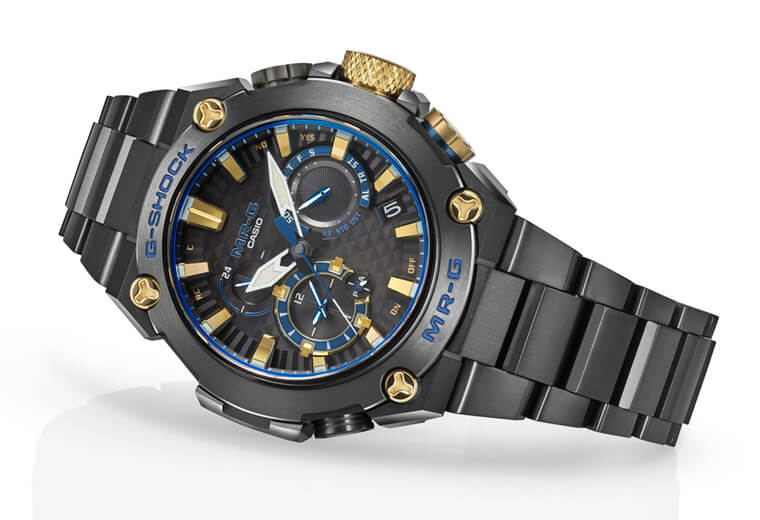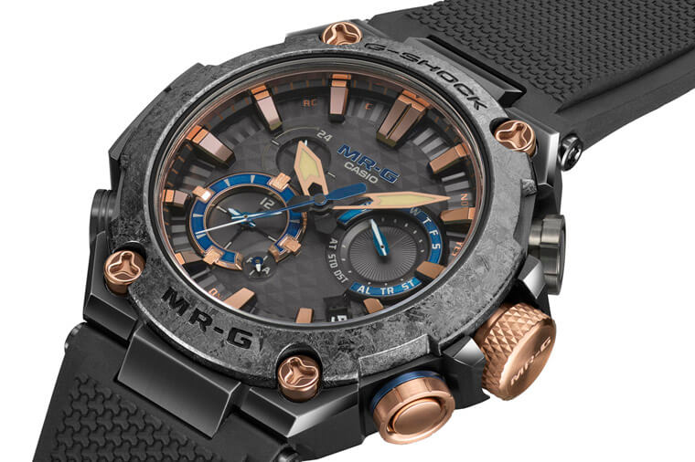 MRG-B2000B以鈦金屬打造錶殼與錶帶,金屬表面經深層硬化與DLC類鑽碳處理。而MRG-B2000R則以鈦金屬錶殼搭配氟橡膠錶帶,錶帶另外使用在日本象徵力量的毘沙門天盔甲之獨特龜殼圖案裝飾,手錶錶圈可見品牌運用結晶鈦金屬製成,鈦材質經高過溫加工後會在表面形成獨特的水晶圖案,這道工序讓人想起製作日本刀刃時的「沸」。