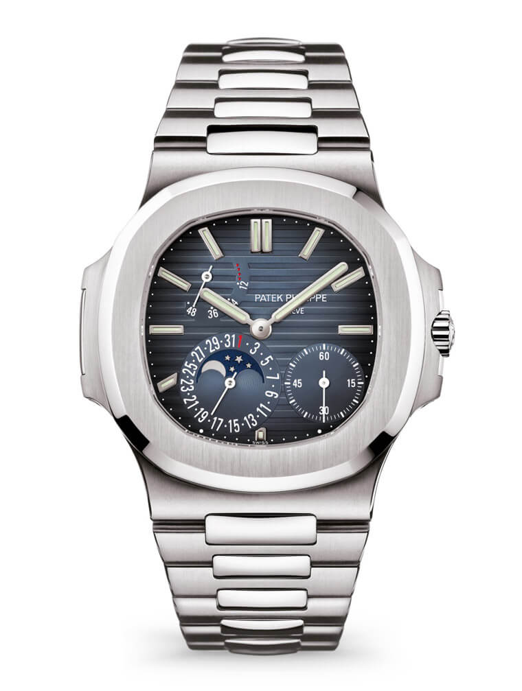 5712/1A算是功能進階型的金鷹運動錶,它的面盤看起來比5711/1A複雜些,包括有小秒盤、指針式日期、月相,還有動力儲存顯示等,由於顯示資訊變多,面盤也因此呈現不對稱的格局,再加上5712/1A光定價就比5711/1A高了大概30多萬台幣,所以過去通常消費者會優先選擇5711/1A。