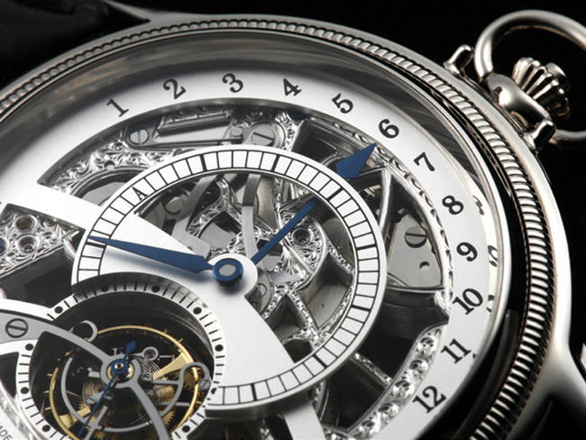 鉑金材質/DR 780手動上鍊機芯/時、分顯示/動力儲存顯示、陀飛輪裝置/鱷魚皮錶帶、一般扣/藍寶石水晶鏡面、螺絲固定式透明底蓋/防水30米/參考價:NT$ 6,200,000