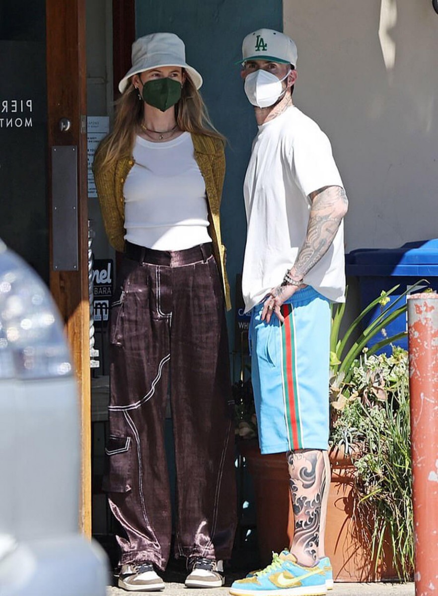 美國人氣天團Maroon 5魔力紅的主唱亞當李維(Adam Levine)日前被媒體拍到他和老婆——超模Behati Prinsloo一同前往加州住宅附近的餐館享用午餐,穿著一身休閒隨興的亞當李維看起來很輕鬆,尤其跟老婆都戴上口罩後顯得相當低調,但其實仔細注意他的行頭,會發現這位天團主唱的華麗貴氣其實藏不住。