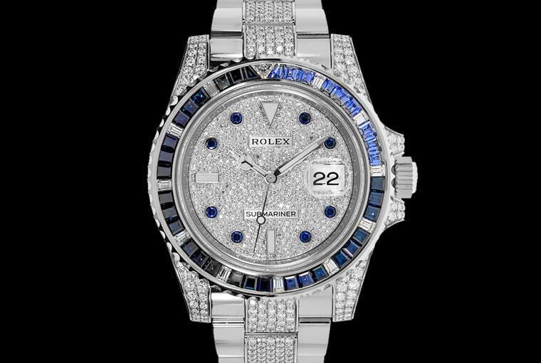 ▲亞當李維擁有的這款白金水鬼錶殼和面盤鑲滿鑽石和藍寶石,價格相當驚人且稀有。Source:Avi & Co.