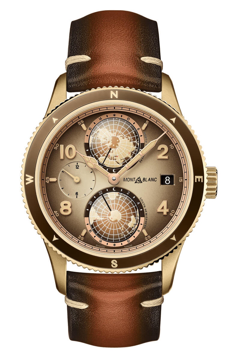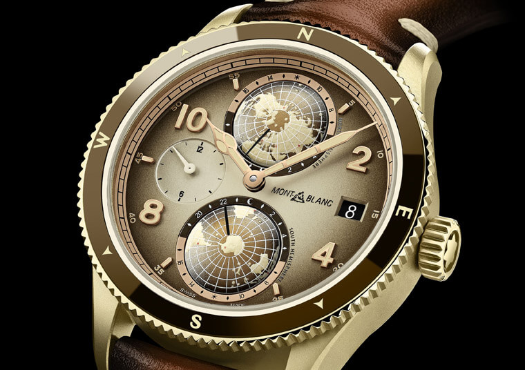 青銅材質/MB 29.25自動上鍊機芯/時、分、日期顯示/世界時間顯示/兩地時間顯示/藍寶石水晶鏡面/防水100米/錶徑42mm/限量1858只/參考價:約NT$ 205,800