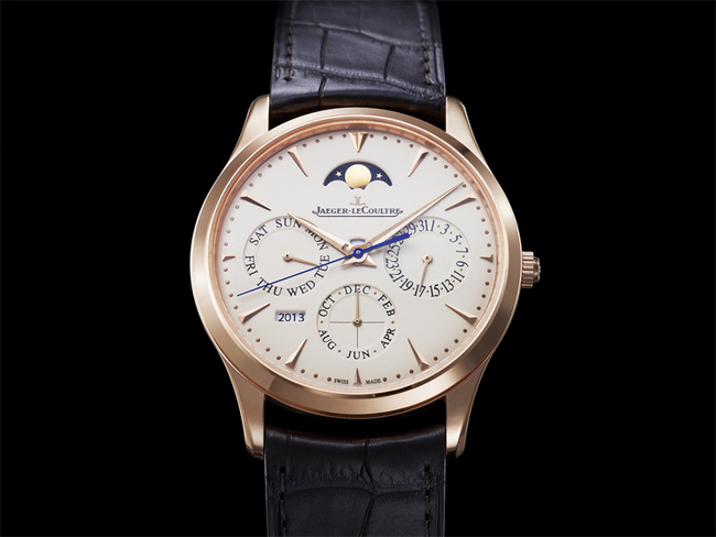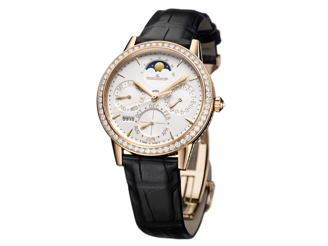 全新Master Ultra Thin Perpetual超薄萬年曆大師系列手錶沿襲一貫的簡約風格,融合了大工坊的經典元素與美學設計靈感。時間顯示清晰易讀、一目了然。除時針、分針和中央秒針外,手錶還擁有三個專門顯示萬年曆的計數器:星期顯示設於9點鐘位置,日期顯示位於3點鐘位置,而6點鐘位置則用於顯示月份。Rendez-Vous Perpetual Calendar約會系列萬年曆手錶展現無盡的時光流轉。它搭載積家868型自動上鏈機械機芯,錶殼的藍寶石水晶底蓋讓機械構造一覽無遺,錶盤以柔和天性呈現時間的精密。直徑37.5毫米的錶殼內,囊括了大工坊所有美學經典元素,而其簡潔純粹的設計則帶來完美清晰的顯示。