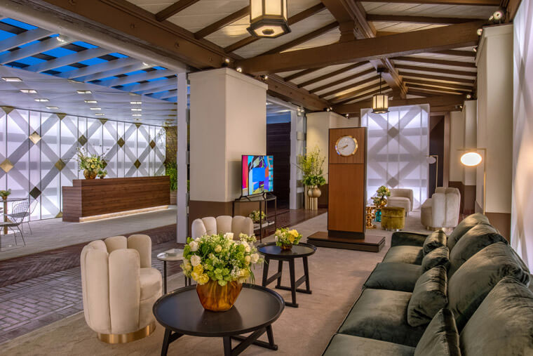 ▲2021年奧斯卡獎Green Room設置在洛杉磯聯合車站側翼的拱形天花板下。