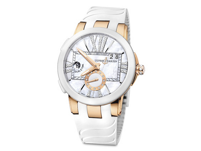 高級手錶品牌雅典表擁有一項突破性技術發明——專利雙時區快調裝置,只要輕按錶圈上的高科技陶瓷按鈕,便可將時針迅速地調校至另一時區,讓佩戴者能更便捷地掌握兩地的時差。機芯的動力儲存長達42小時,抗磨損藍寶石水晶玻璃如愛情一般經得起時間的考驗。男錶黑色旋入式錶蓋深邃沉穩,配以超大羅馬數字時標和線條分明的立體指針,清晰易讀;女錶純白珍珠母貝錶盤精緻優雅,鑽石點綴的時標展現低調的奢華,令佩戴者舉手投足都散發出自信與魅力。