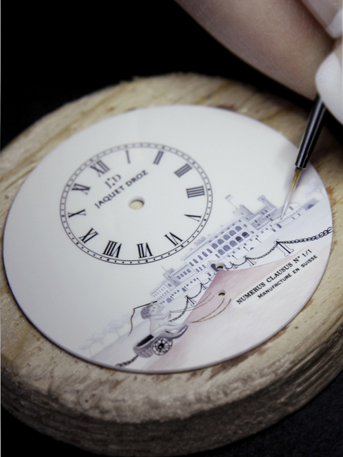 手錶靈感源於1916年一本關於雅克德羅家族歷史上的古董書封面上的一幀插圖,由天才機械師、製錶大師皮埃爾雅克德羅親筆繪製,這位傳奇大師生活在建築與植物學啟蒙的18世紀,其繪製的圖案也烙上了時代的印記:一只蝴蝶拉著小天使駕駛的馬車,匆匆趕路。一方面,小天使putto,也就是小愛神丘比特,是義大利文藝复興與巴洛克藝術的象徵;而蝴蝶,則是普遍的美、輕盈與自由的代表。摩納哥王宮後院也裝飾著相同風格的畫作,搭配現實主義場景,與溫柔夢幻的馬車圖案所代表的,也與品牌所捍衛的價值理念不謀而合:保持童真的權利,馳騁想像的能力,以及對夢想的信心。