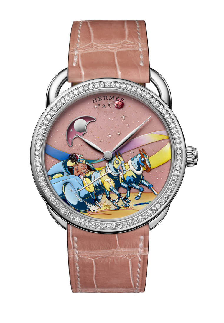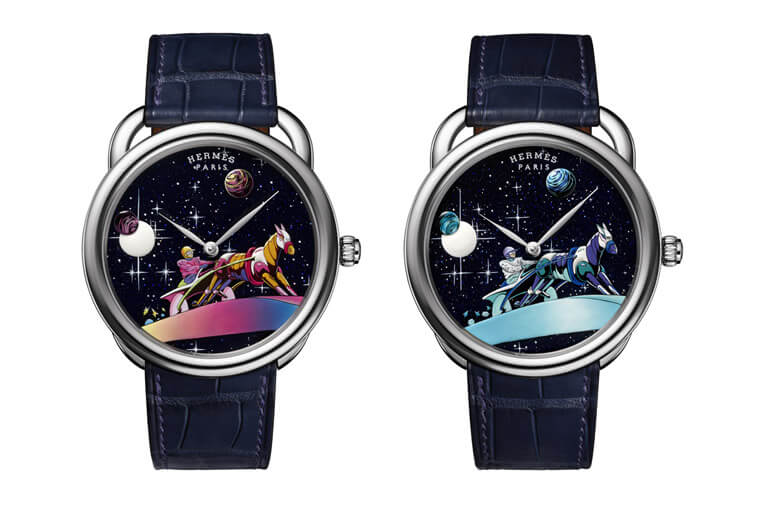 向來擅長將手錶面盤當成畫布的HERMÈS愛馬仕又出招了,品牌發表新款Arceau Space Derby微繪工藝手錶,將愛馬仕絲巾上的普普風與美式動漫風格的繪畫作品移植進老牌的Arceau系列中,賦予手錶賞心悅目的當代藝術氣息。