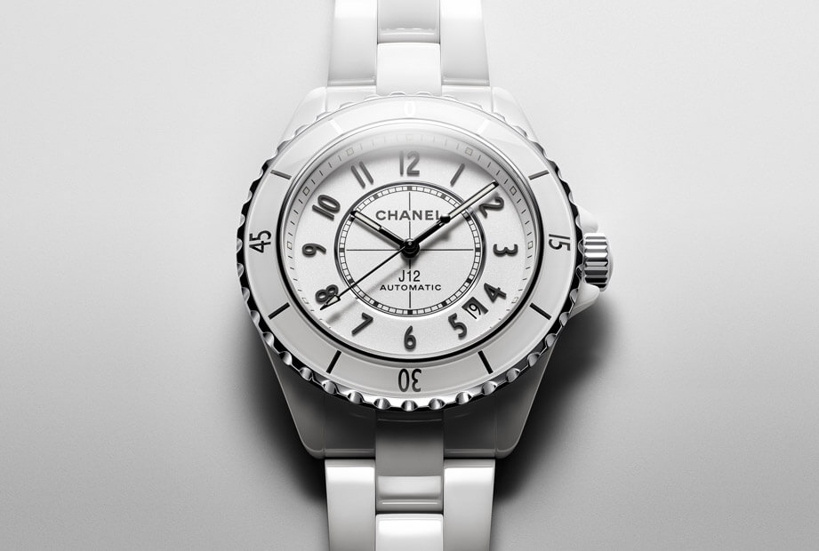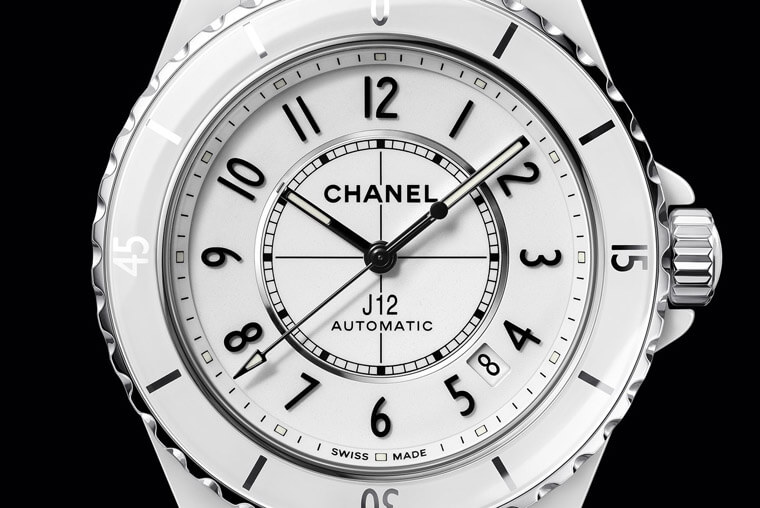 面盤方面,J12的"AUTOMATIC"及"SWISS MADE"字樣調整為CHANEL標準字型,”SWISS MADE"標誌調整至內環圈。時標改以陶瓷材質製成,使讀取時間更為清晰,同樣新增的還有內環圈的阿拉伯數字時標,使佩戴者更便於讀取時間。最後在時針、分針方面皆調整為等寬,新款的白色陶瓷殼搭載黑色指針,並於指針提上白色夜光物料,而黑色款的指針配色正好相反,呼應黑白對比的效果,以上外觀特徵加上機芯的換血策略,剛好構成這一代J12的迷人樣貌。