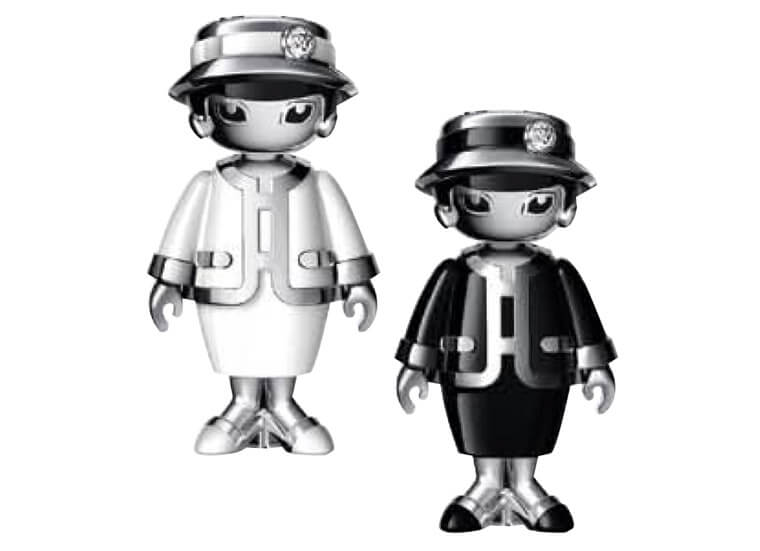 ▲將香奈兒女士圖案立體化同時將其結合兼具美觀與實用意義。2021年吊墜鑲嵌1顆明亮式切割鑽石於帽飾,服飾套裝運用黑與白漆手工上色,肌膚則以18K白金鍍銠噴砂工序處理。