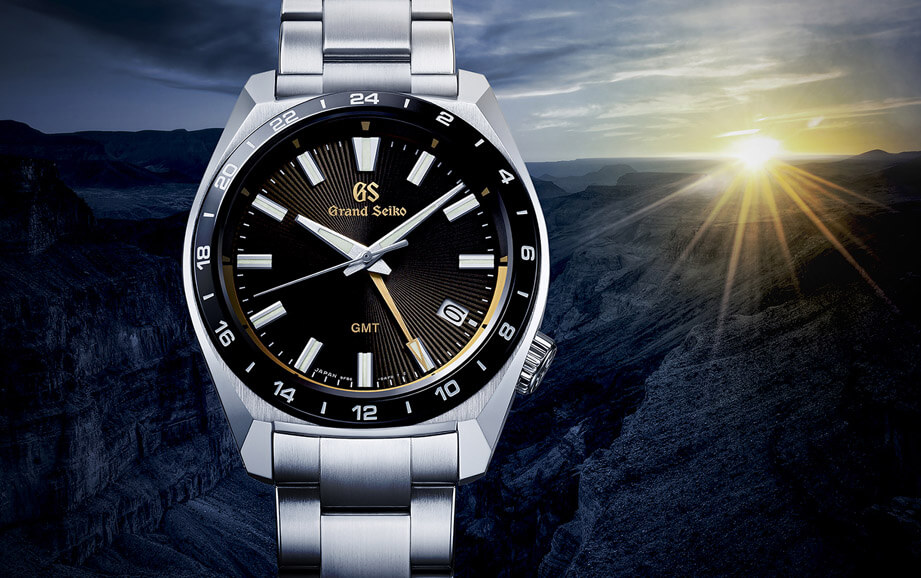 GRAND SEIKO的創作一向滿有梗的,例如這款錶身為SEIKO創立的140週年紀念錶,它的設計也帶有鮮明的主題性,這此品牌以日出的景色來代表GS堅持挑戰創新的精神,這點從黑色面盤上的放射刻紋、金色GS Logo及GMT指針等可以找到與日出太陽光芒輝映的設計細節。