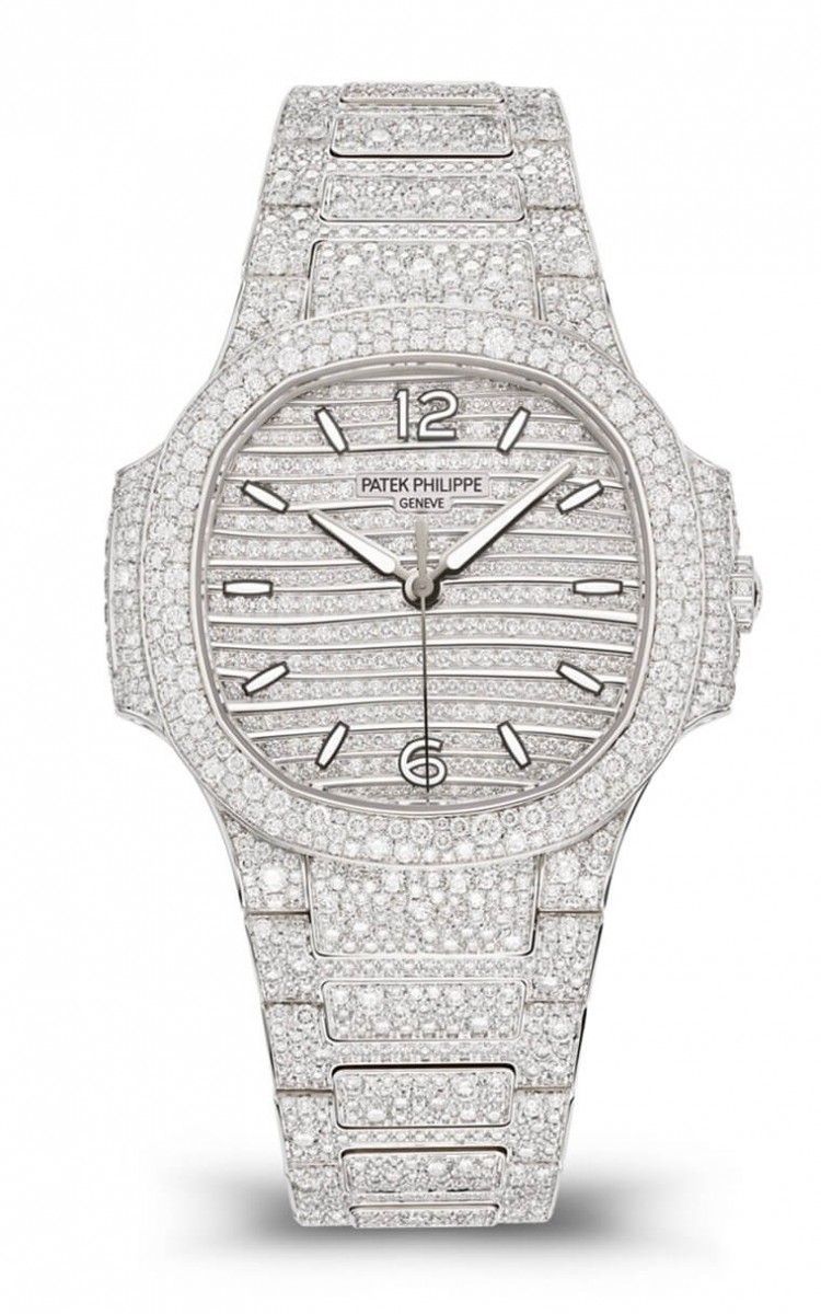 百達翡麗繼2021年4月推出玫瑰金款的Nautilus 7118/1450之後,這次緊接連白金版本也補上了。PP透過寶石鑲嵌工藝將金鷹女錶升級到另一種奢華境界,不止白金錶殼上鑲滿鑽石,就連錶冠、面盤以及鍊帶都一一鑲上鑽石,數量超過2500顆,璀璨耀眼到快讓人眼睛睜不開。而在華麗非凡的鑽石裝飾之外,7118/1450G搭載的還是百達翡麗穩定的基礎機芯324 S,它的功能雖簡約,但是品質以及精準度都有PP印記掛保證,製錶工藝層面絕對也是女錶中的頂尖人才。