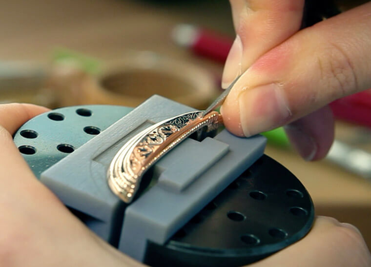 手工雕刻:工藝師用雕刻來潤飾錶殼,或是襯托其他工藝製成的圖案裝飾。