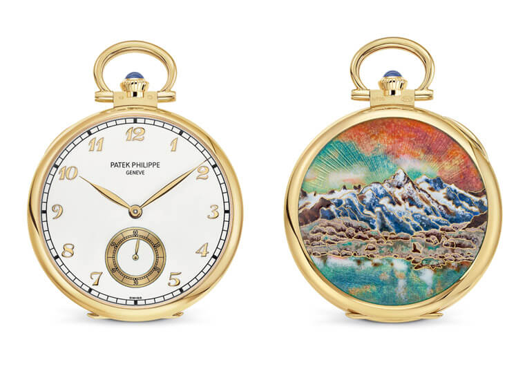 微繪琺瑯:屬於琺瑯彩繪技法中難度最高的一種,常見於懷錶錶殼底蓋及手錶面盤,工藝師在過程中會手執纖小畫筆,逐筆在時計上頭繪上精巧的圖案。