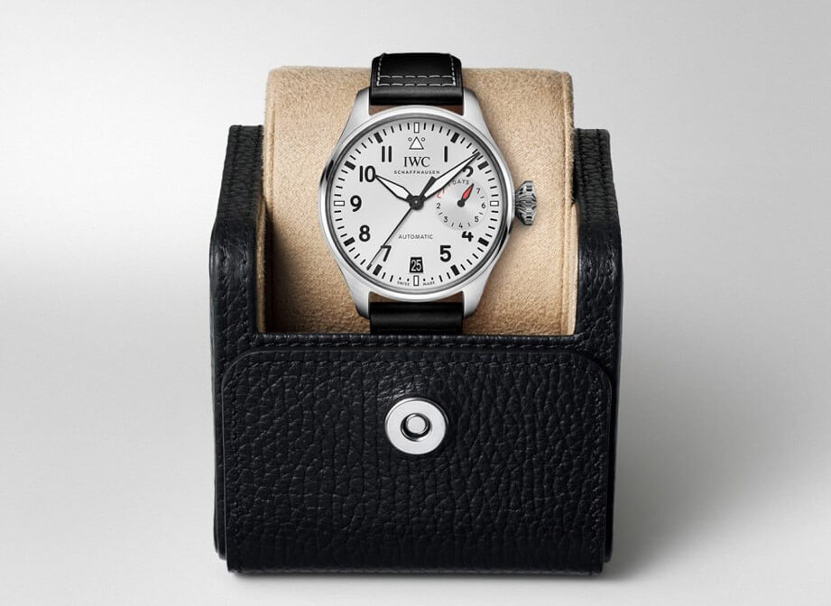 IW501014採用不鏽鋼材質製作錶殼,錶殼直徑為系列招牌的46.2mm大氣風格,錶殼厚度也達15.6mm,份量感十足,同時手錶還具有60米的防水性能。手錶外觀除了碩大的錶徑外,包括傳承自古董飛行錶的大型洋蔥式錶冠也很顯眼,搭配黑色小牛皮錶帶,整體印象完全就是玩家心中大飛的經典樣貌。