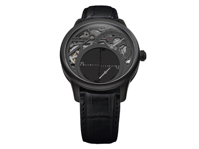 有別於2013全新匠心系列神秘秒針手錶,該錶款的指針採用黑金色調,而黑色「神祕秒針盤」的刻度則為淡灰色與黑色。鏤空偏心式小時與分鐘計盤上沒有任何數字,包括錶殼、錶圈與錶盤在內的所有元素皆經噴砂處理,ML215 機芯自動上鍊系統的自動盤亦採 ADLC 鍍層,並可透過藍寶石水晶底蓋一覽無遺。自動盤的鐫刻字樣為 ONLY WATC H 2013 - PIECE UNIQUE 1/1 (2013 年 Only Watch 拍賣會獨一無二手錶 1/1)。