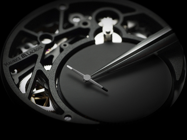 ▲ 鏤空偏心式小時與分鐘計盤上沒有任何數字。