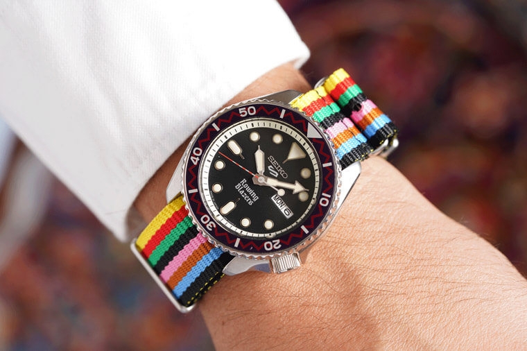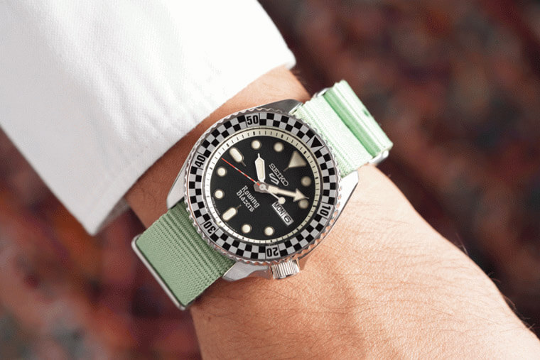 值得一提的是,三款SEIKO x ROWING BLAZERS聯名錶除了原廠配置的金屬鍊帶外,他們都還會另外附上一條尼龍材質NATO錶帶,其中方格旗錶圈的NATO帶為淺綠色、鋸齒錶圈的NATO帶為彩色條紋,至於四色錶圈的NATO錶帶又是黑色,賦予每款錶更強烈的自我個性。其中SRPG49和SRPG51分別限量500只,目前這系列台灣方面尚未上市,因此還不清楚每款錶的價格資訊。
