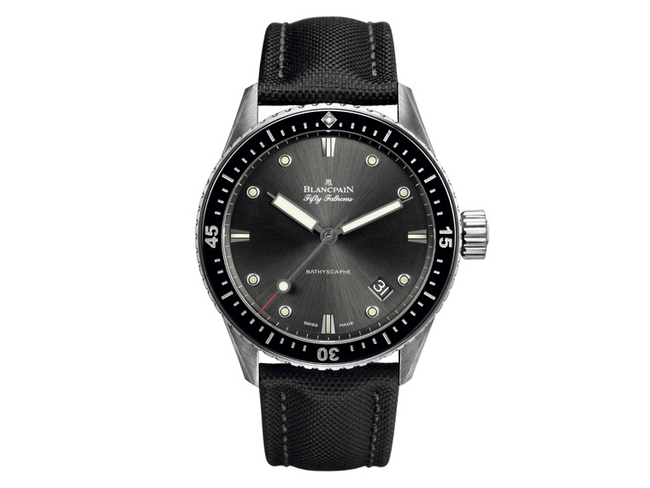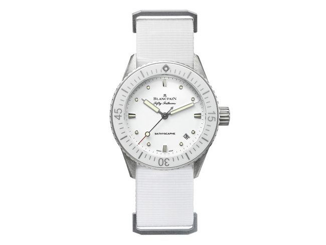 2013年為寶鉑Fifty Fathoms五十噚潛水手錶系列誕生60周年,全新Fifty Fathoms Bathyscaphe潛水手錶在向輝煌傳統致敬的同時,以繼往開來之勢,引領業界的尖端科技潮流。手錶搭載寶鉑卓越非凡的機械自動上鏈機芯,更特別搭載了無磁性矽質遊絲。此外,品牌還在新款時計中注入另一大技術創新——液態金屬(Liquidmetal®)深度計。這一非晶態金屬合金可以防止任何形變,確保與陶瓷內圈完美貼合。兩種材質均堅實耐用,顯著提升了錶圈的抗劃及抗刮特性。