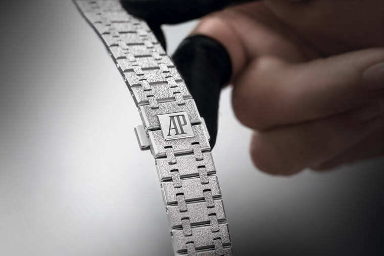 ▲霜金工藝為義大利珠寶設計師Carolina Bucci與愛彼合作激盪的火花,Bucci將珠寶首飾傳統的佛羅倫斯黃金錘擊技術引進製錶過程,使得金屬表面出現迷人的不規則紋理。