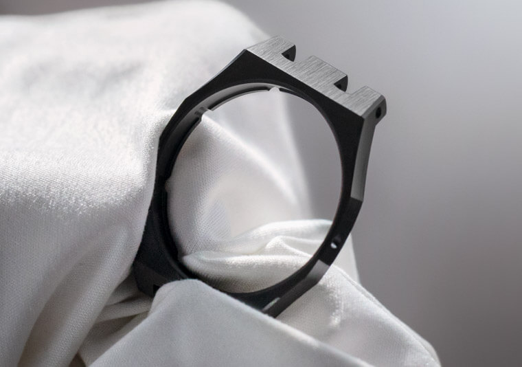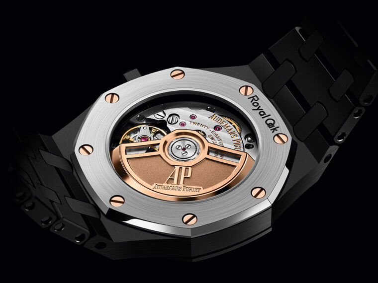而就算順利製作出顏色和品質都合格的陶瓷零件,後面還有加工修飾這道關卡,一如金屬材質,用來製作皇家橡樹手錶的陶瓷材質也必須經過拋光或拉絲處理,對於硬度相當高的陶瓷而言,要在上面精修裝飾是一大難題,不過愛彼畢竟身經百戰,從黑陶瓷殼的34mm皇家橡樹自動錶看來,品牌早就找到了能夠完美處理陶瓷材質的關鍵技術。