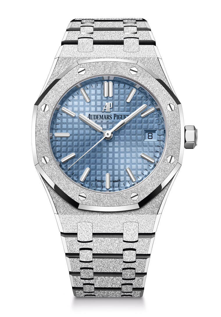 ▲愛彼2020年首度推出錶徑為34mm的皇家橡樹自動錶,2021年品牌採用霜金工藝搭配淺藍色面盤賦予手錶耳目一新的視覺感受。