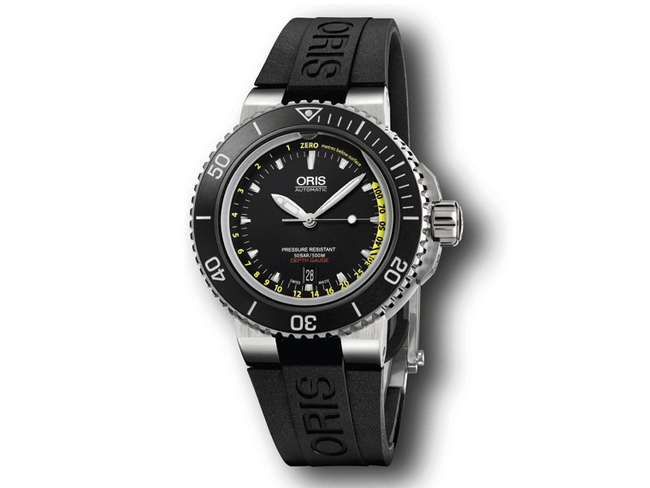 ORIS Aquis 深度測量潛水錶,以獨特防水盒呈現,內含證書以及一個可替換的鋼帶與工具套組。另外還配備了專門的清洗工具,讓有野心的潛水員可以自行嘗試。