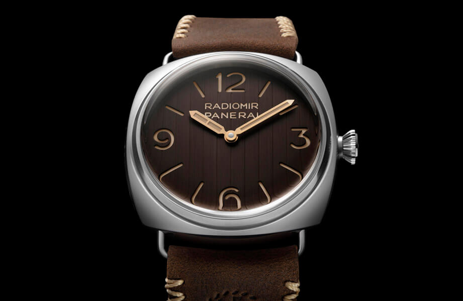 PAM01243的精鋼錶殼特別採用霧面和氧化處理達到仿舊效果,為的是展現Eilean帆船的歷史歲月感,它的大尺寸枕型錶殼、焊接線型錶耳這些特徵都是來自早期的Radiomir手錶,而在錶殼左側,我們可以看到與Eilean帆船船身相同的龍紋徽章以及”EILEAN”字樣。而在手錶的面盤上,首先映入眼簾的是讓人聯想起帆船甲板的垂直線條裝飾,如同錶殼,這些條紋裝飾也特別採用舊化處理,讓它的棕色調看起來更有久經時間焠鍊的感覺。至於手錶的三明治面盤結構下方以及指針則是塗上色Super-LumiNovaTM夜光塗層,它們在黑暗環境中會發出綠色的夜光效果,佩戴者因而能夠清楚閱讀時間。