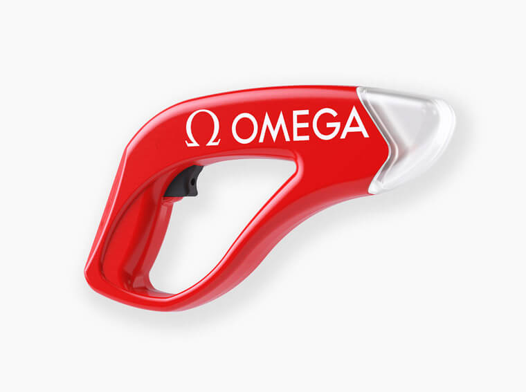 傳統起步槍有個問題在於聲音傳播速度隨著選手起跑位置不同而會有離起步槍愈近聽到聲響會快的弊病。歐米茄打造出的電子起步槍會和每位參賽者身後的揚聲器連動,當裁判按下板機時,它會同步發出聲響和閃光,也會傳送脈衝給計時設備,確保選手可以同步接受到起跑資訊。