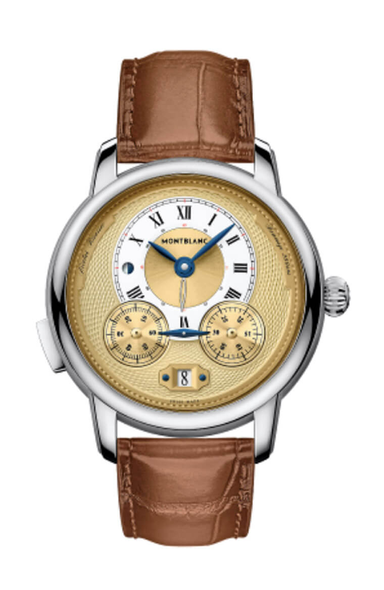 不鏽鋼材質/MB R200自動上鍊機芯/偏心時、偏心分、日期顯示/計時碼錶功能/兩地時間顯示/藍寶石水晶鏡面/防水50米/錶徑44.8mm/限量200只/參考價:NT$ 276,700