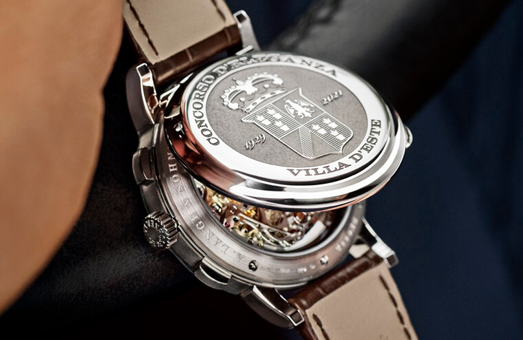 A. LANGE & SÖHNE朗格自從2012年起擔任全球著名古董車展Concorso d’Eleganza Villa d’Este的主要合作夥伴,這項活動由於辦在義大利科莫湖畔,加上每年參展的古董車又各個來頭不小而贏得“Hollywood on the Lake”的美名,過去幾年我們也都曾介紹過朗格會特別打造一款Lange 1 Time Zone “Como Edition”送給每年展覽獲頒「最佳汽車」獎項的得主,這款錶與一般的Lange 1 Time Zone不同之處在於它採用軍官式底蓋設計,底蓋上會刻有“CONCORSO D’ELEGANZA VILLA D’ESTE”字樣、大會盾牌Logo、車展創始年份(1929年)以及當屆活動年份等資訊,不過再連送了好幾年Lange 1 Time Zone “Como Edition”後,2021年朗格似乎想要做出點改變。