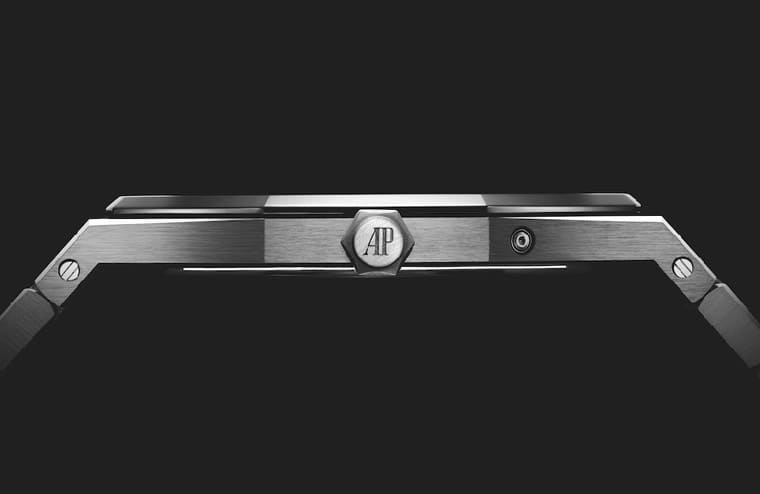 26586與26574家族最主要的差別在於錶殼厚度,兩者的錶徑雖然都是41mm,不過前者的錶殼厚度僅6.3mm,後者的錶殼厚度則達9.5mm,且兩款不只是可以靠著面盤有無格紋、錶殼厚薄來分,它們的面盤設計也還是可以看出彼此的差異。例如26586沒有額外設置週數顯示,同時它的月相是放在12點方向呈現「當頭月」造型,另外26586的閏年與晝夜顯示分別置於3點的月份盤與9點的星期盤下方而非採同軸設計,這些面盤上的細節變化都讓26586成為皇家橡樹系列萬年曆手錶中的特異分子。