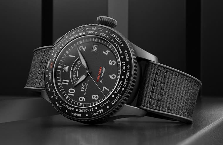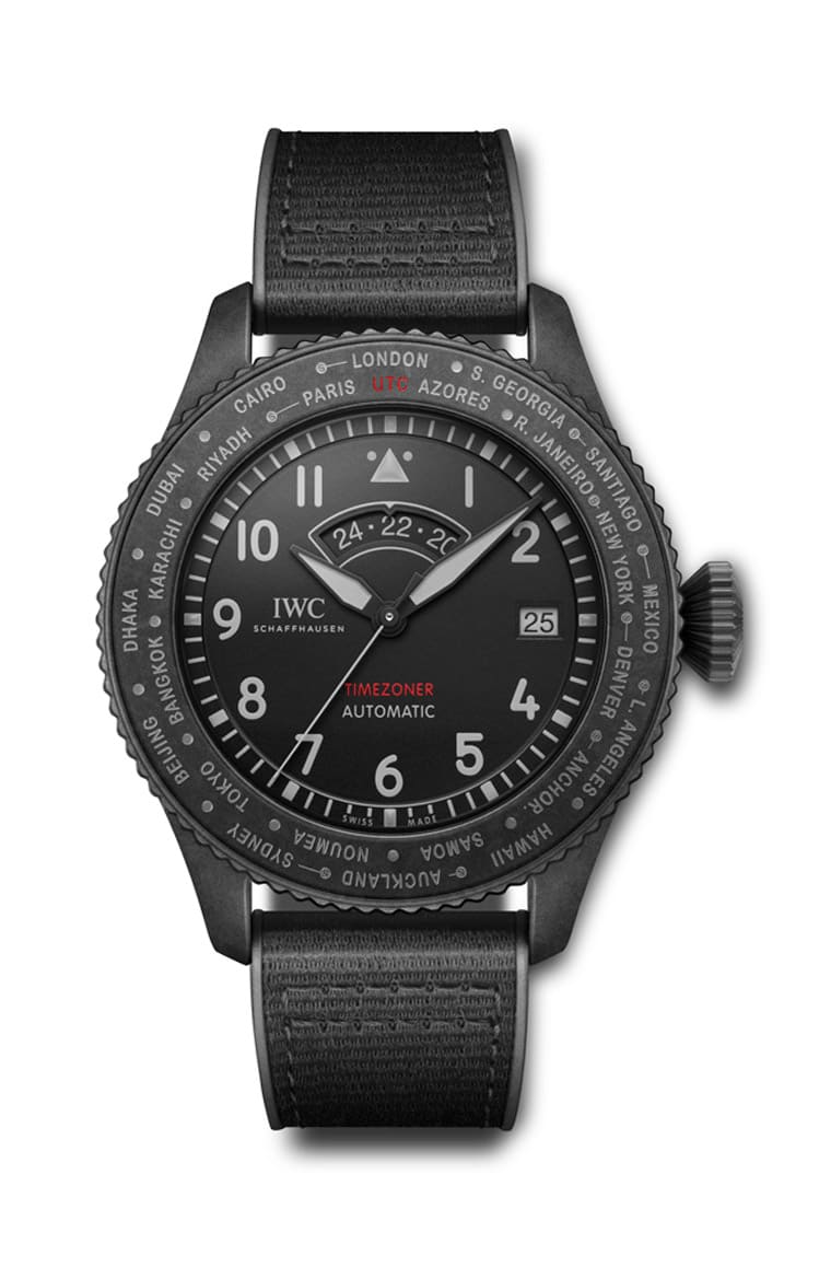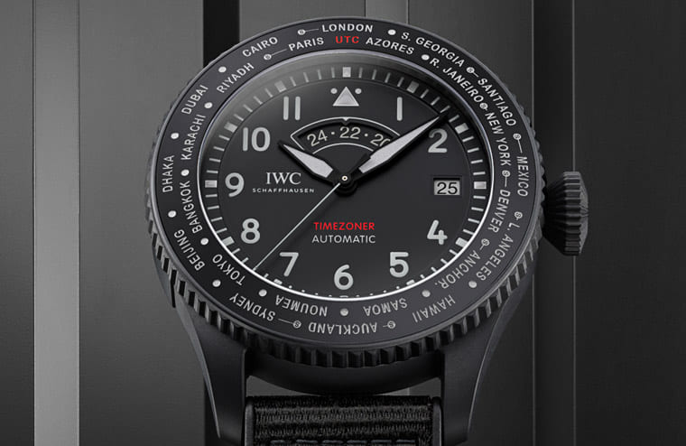 ▲飛行員Top Gun世界時間錶擁有IWC專利設計,佩戴者只需要旋轉錶圈,就能達到調校時間的目的。