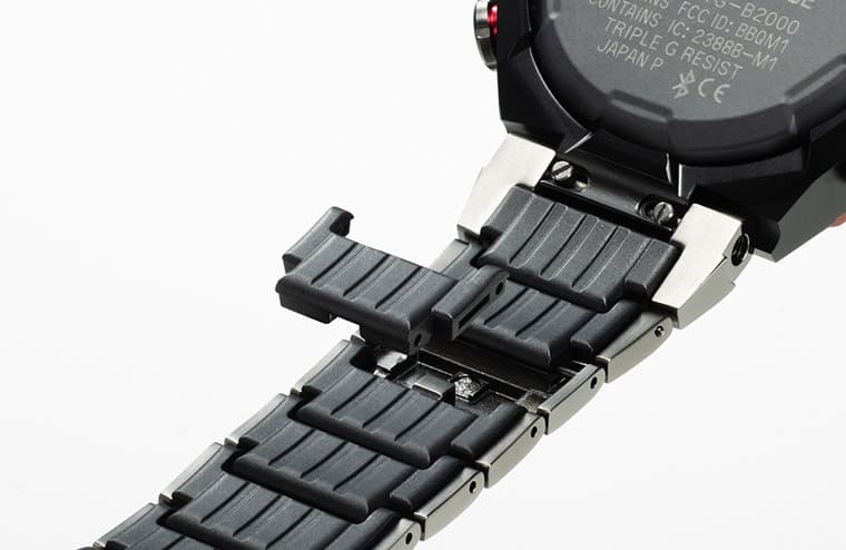▲兩款MTG-B2000系列新作均採用由金屬與強化樹脂零件組成的複合式錶帶,除了更加貼合手腕與減輕重量,並且依舊維持正面金屬的外觀質感。