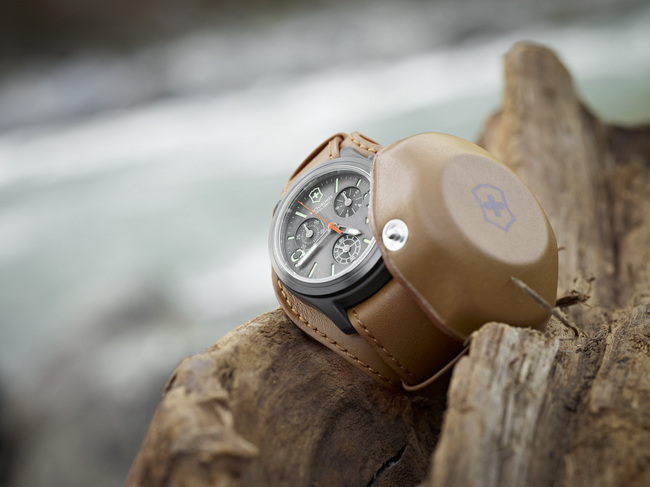 設計師將瑞士軍刀的形狀和刀套形態完美融入兩個小錶盤上的古典刻花之中,藉此向Victorinox品牌的起源和價值觀致敬。小錶盤旋轉時宛如軍刀刀鋒摺合的動作,而時標和紅色中央秒針的平衡錘等時尚設計,亦與聞名遐邇的多功能瑞士軍刀遙相呼應。瑞士軍刀因其多重功能性與簡單易用而成為經典,新錶款秉承瑞士軍刀的哲學與實用功能,勢必成為簡約設計的典範。
