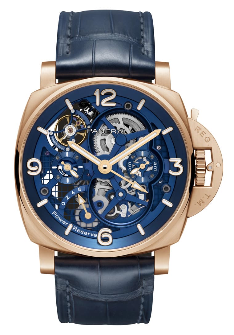 PANERAI沛納海偶爾會推出的複雜功能款式Luminor Tourbillon 2021年改換上高貴的Goldtech™紅金材質,散發有別於系列前幾年陸續出現過的直接金屬雷射燒結鈦金屬或陶瓷錶殼的氣場,值得一提的是,這也是沛納海首度採用Goldtech™紅金打造Luminor Tourbillon的錶殼。