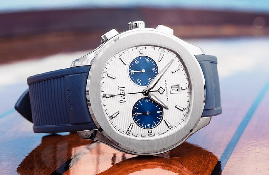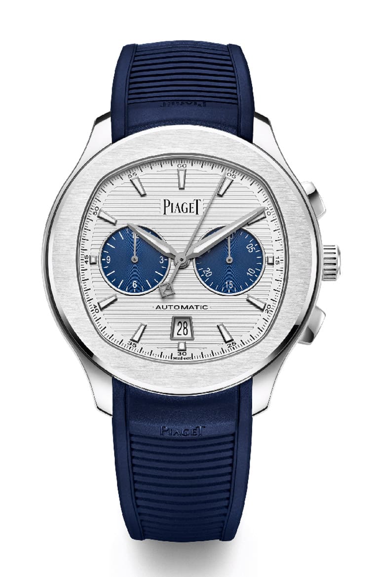 ▲伯爵將Polo計時碼錶改成白色面盤配藍色計時盤的類熊貓面風格,讓手錶看起來耳目一新同時也有更討喜的顏值。