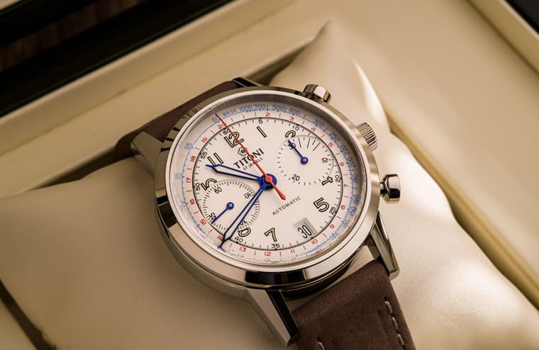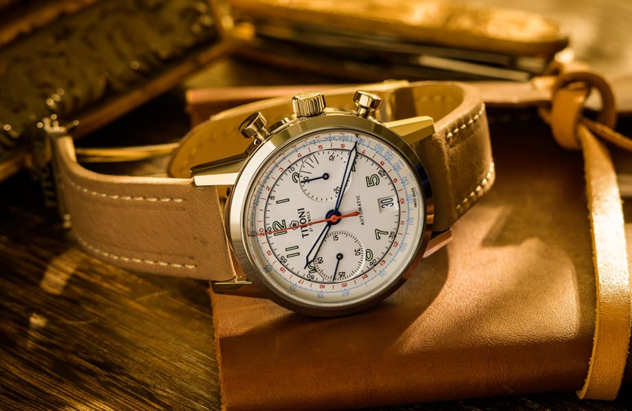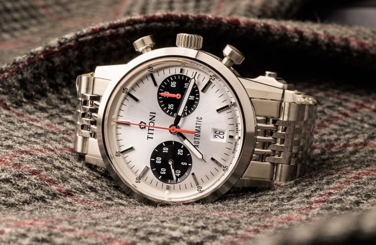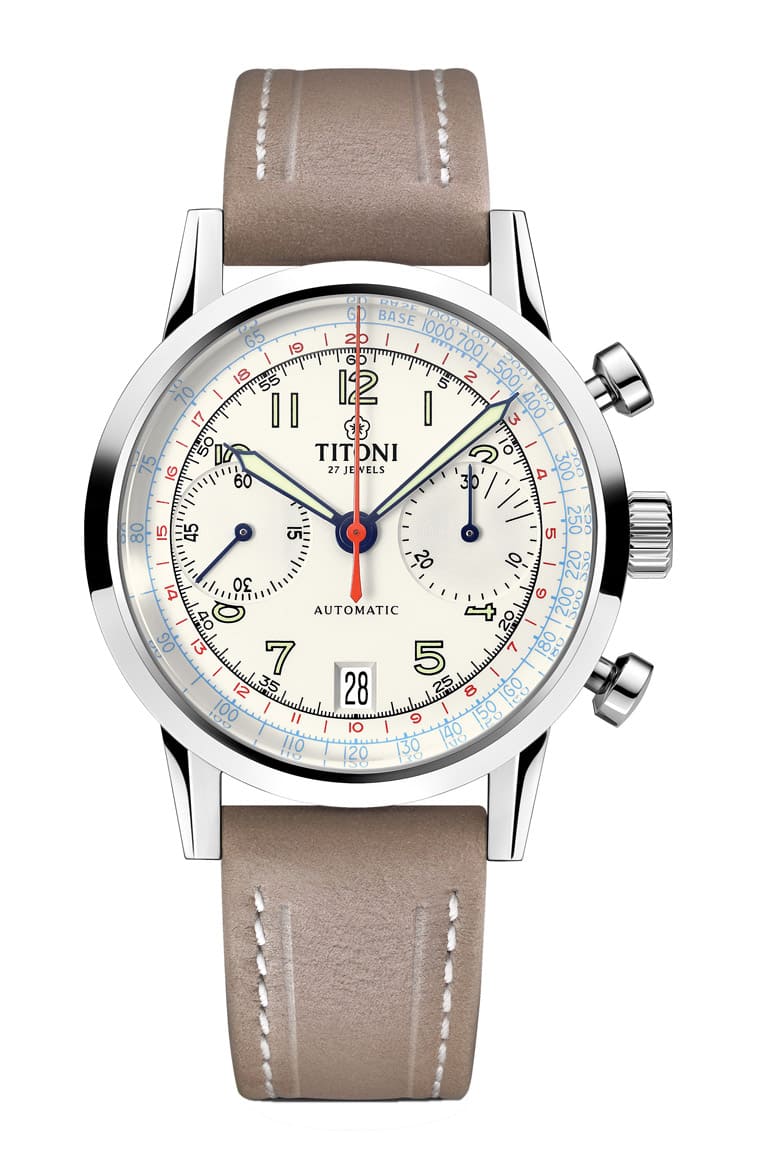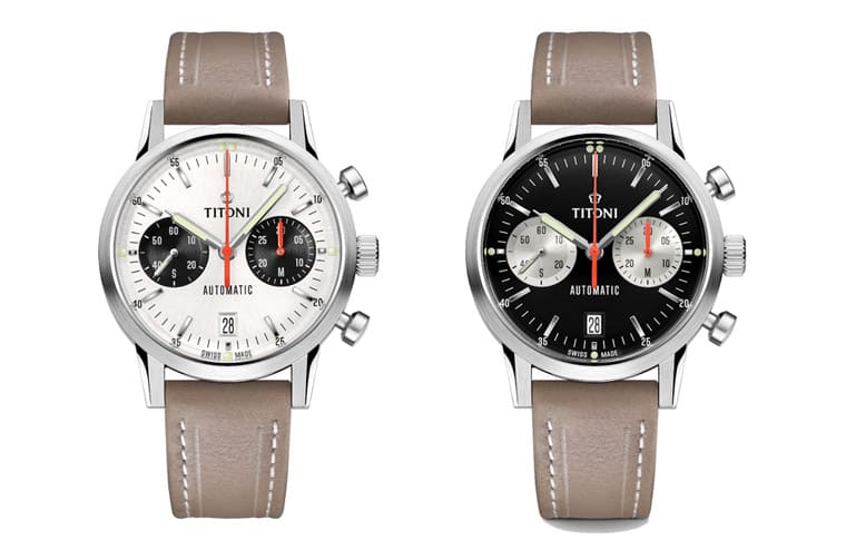 ▲TITONI以1950年代的計時錶為靈感,推出新款Heritage傳承計時系列。