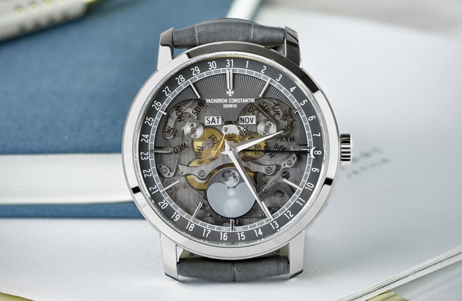 ▲江詩丹頓Traditionnelle系列新作蘊含實用全日曆加月相功能,且品牌採用藍寶石水晶面盤,徹底解放機芯的複雜結構,讓人一窺其立體層次。