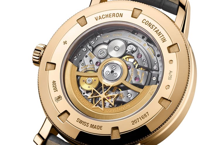 錶款搭載的2460 QCL/2機芯以2450機芯為基礎,擺輪震頻28,800vph、動力儲存達40小時,除了正面複雜的結構直接呈現在佩戴者面前,裱褙透明底蓋下方同樣可見機芯採用圓形粒紋裝飾的夾板,以及底板上的日內瓦波紋,還有那些經倒角打磨的橋板等等,另外經過鏤空處理並且融入馬爾他造型的K金自動盤一方面有助提升上鍊效率,同時也能讓佩戴者觀賞機芯看得更盡興,無論正反兩面,均散發高級製錶吸引人的工藝底蘊。