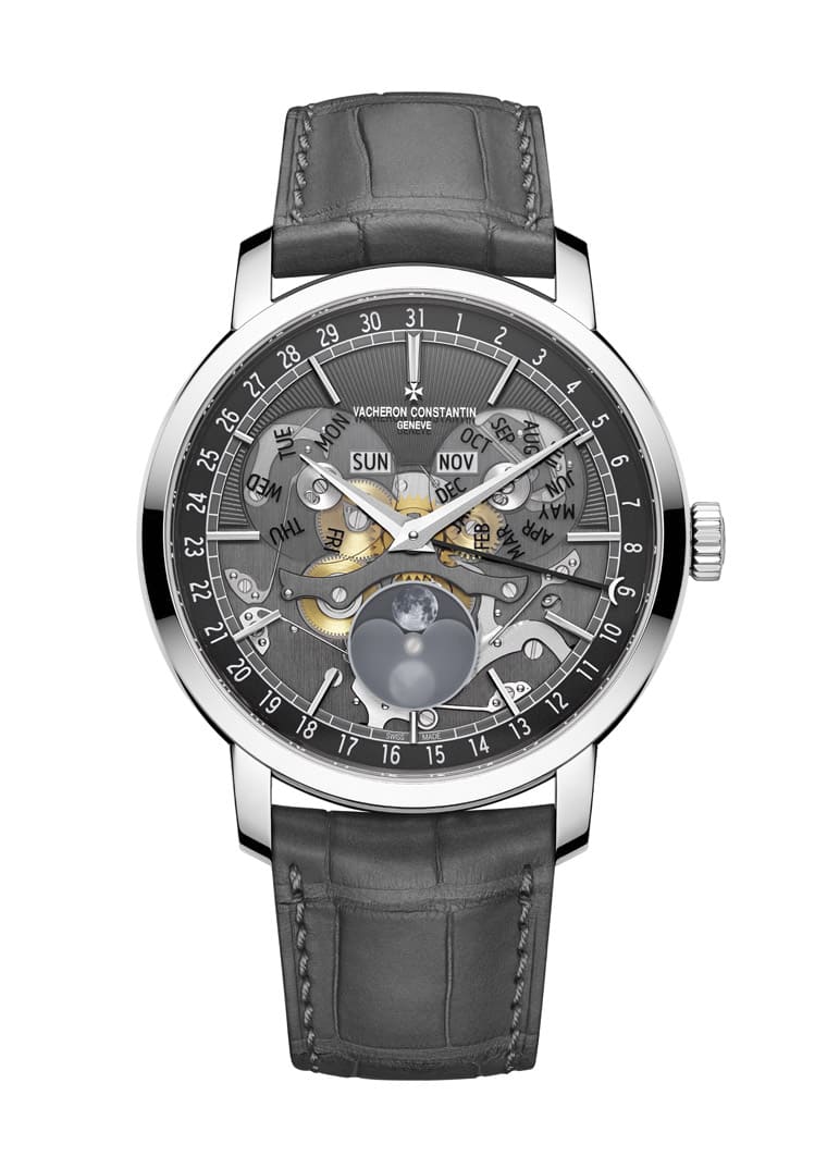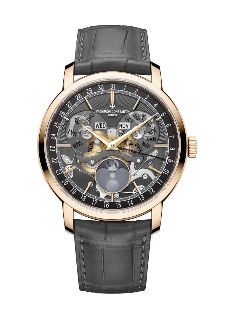 VACHERON CONSTANTIN江詩丹頓曾在2019年時推出過一款Traditionnelle Twin Beat雙重芯率萬年曆手錶,它搭載的3610手動機芯設有兩枚擺輪能分別以5赫茲(36,000次/小時)和1.2赫茲(8,640次/小時)的震頻運作,一旦佩戴者切換到低頻模式時,手錶的動力儲存可以一舉延長到65天之久,獨特的概念和強大的動力儲存效果令人印象深刻。最近品牌推出一款新作Traditionnelle全日曆手錶,乍看讓人想起Traditionnelle Twin Beat,但是新款倒是沒有這種能隨意切換擺輪和超動動力儲存的特異功能,但是它所具備的顯時功能以實用性而言卻更貼近日常佩戴所需。