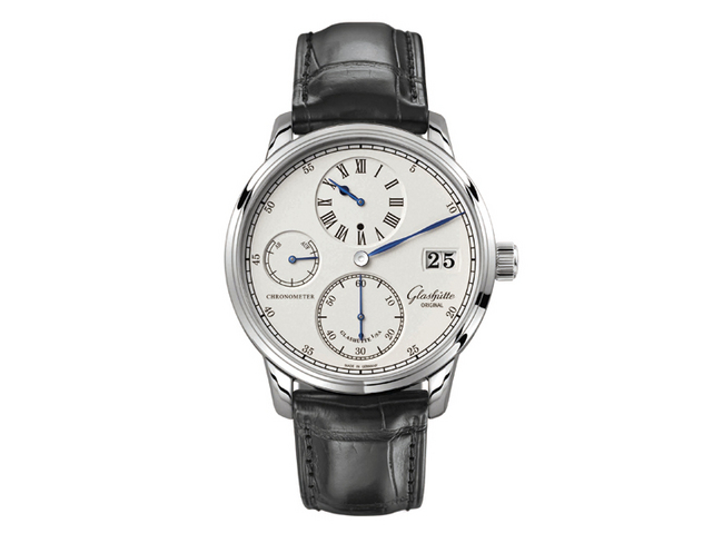 Senator Chronometer Regulator 經德國天文台官方認證並獲得德國校準服務機構(DKD)的證書。有別於瑞士天文台(COSC)的認證標準──每只機芯(不包括錶殼)在五個位置上做測試;德國天文台官方認證的測試標準則要求整錶在格拉蘇蒂鎮接受為期15 天的測試。透過錶背的藍寶石水晶玻璃,可欣賞到精美的機芯,格拉蘇蒂原創自產的58-04 機芯最為矚目的特色不單是其雙色雕刻的擺輪夾板,還有發條盒、上鏈擺輪,以及驅動動力儲存顯示的行星齒輪系統。此外,機芯獨特的倒角、拋光精鋼零件、藍鋼螺絲、鵝頸微調裝置及飾有品牌代表性螺紋的四分之三夾板,均可細細觀賞。兩款Senator Chronometer Regulator 手錶均配上經典的啞黑色路易斯安那短吻鱷魚皮錶帶及折疊扣。