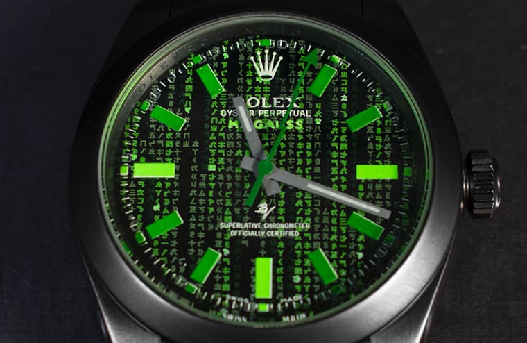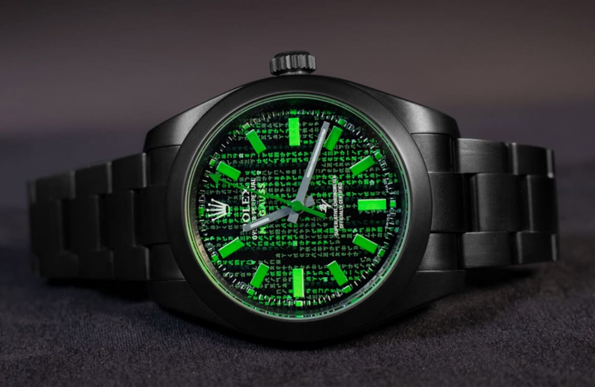 ▲《駭客任務》系列電影開場的綠色亂碼畫面深植人心,啟發義大利改裝錶品牌BLACK VENOM以此為靈感打造勞力士Milgaus改錶。Source:翻攝自Youtube