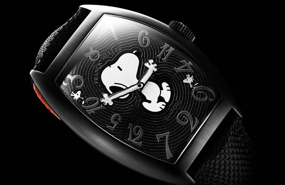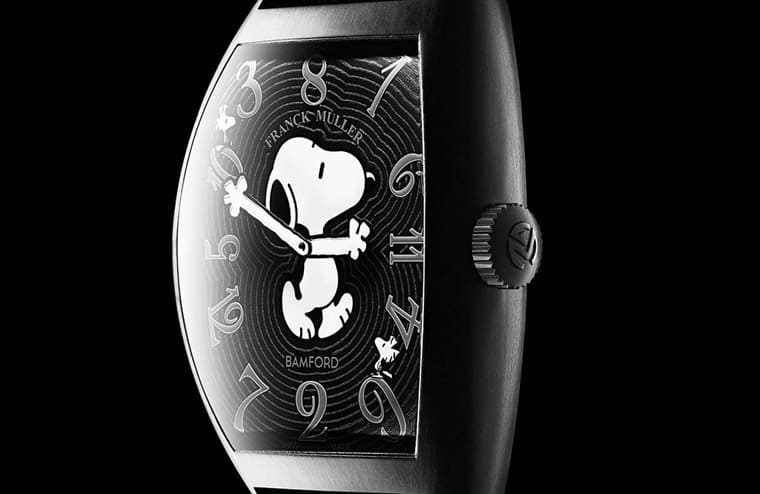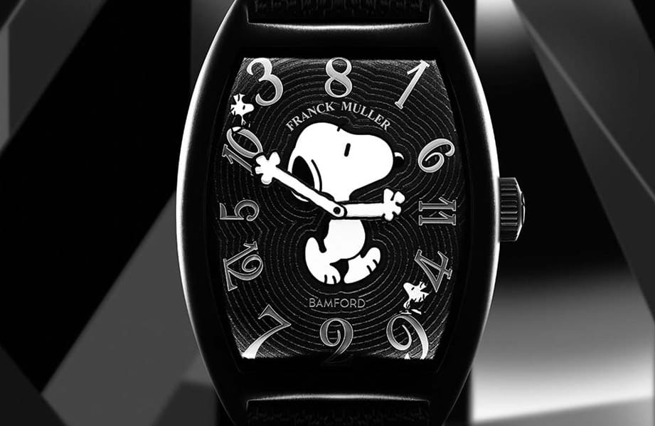 知名改裝錶品牌BAMFORD偶爾會和其他製錶品牌合作推出Snoopy史努比特別版,或直接改裝其他品牌的錶(融入史努比主題),風格其實就跟近年香奈兒創作的J12 Mademoiselle有異曲同工之妙,主要奧妙就是把史努比圖案大範圍放在面盤上,並把手錶的指針化為圖案的雙手。這陣子BAMFORD又嘗試改裝了FRANCK MULLER的Crazy Hours Cintrée Curvex,將他們對於史努比的愛挹注到FM著名的Crazy Hours手錶系列上。