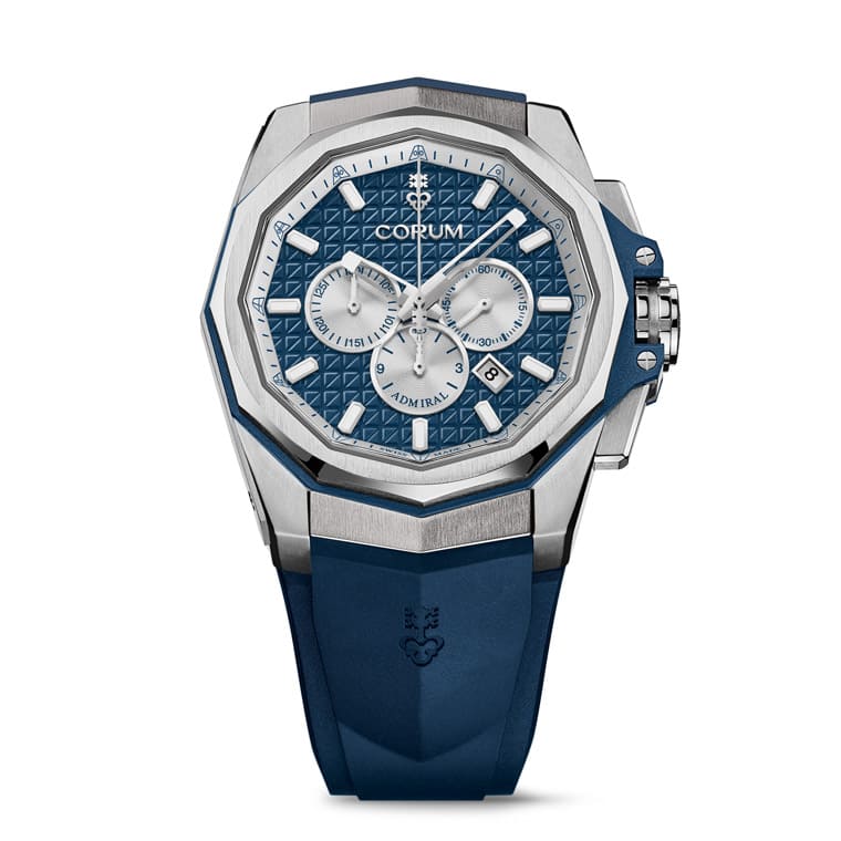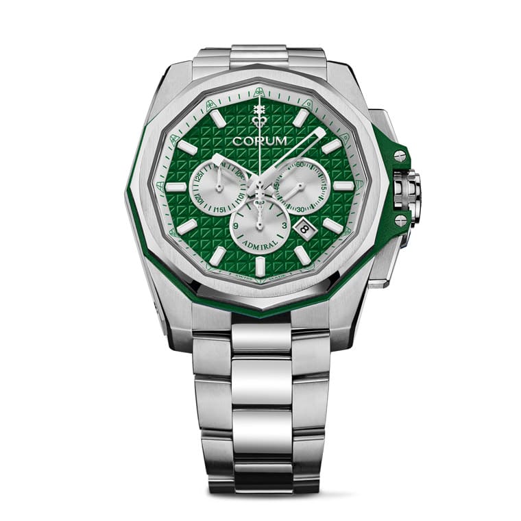 近年CORUM崑崙錶將旗下系列錶款重新調整,連最具代表性的海軍上將系列也劃分為現代的45mm、中庸的42mm以及溫柔的38mm等三個分支。品牌近期新發表海軍上將45限量計時碼錶,貫徹系列創作初衷,並透過亮眼配色,將時尚感與運動個性巧妙結合。