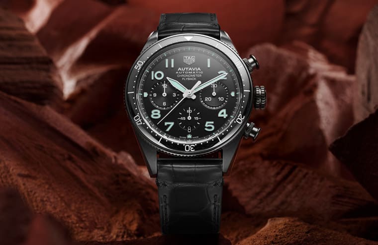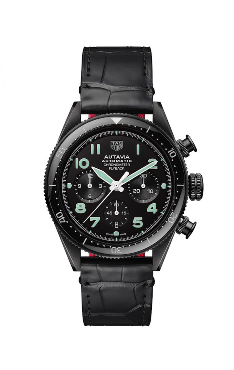 錶款採用不鏽鋼錶殼,其中一款維持金屬原色,另一款則是以DLC鍍層於外表覆上一層酷炫的黑色調,兩款錶皆配置黑色陶瓷雙向旋轉錶圈,利用陶瓷耐磨抗刮的特性,賦予手錶正面更佳的保護效果,而它們也同步啟用黑色鱷魚皮錶帶展現復古手錶該有的優雅韻味。金屬拋光不鏽鋼錶殼的Autavia 60週年飛返計時碼錶以銀色面盤搭配黑色計時小錶盤的熊貓面示人,展現出1960年代Autavia手錶的時代風格;至於黑色DLC錶殼款則是採用全黑面盤搭配綠色Super-LumiNova®夜光塗層的指標和指針,詮釋泰格豪雅在1960年代與德國軍方合作開發軍錶的淵源。