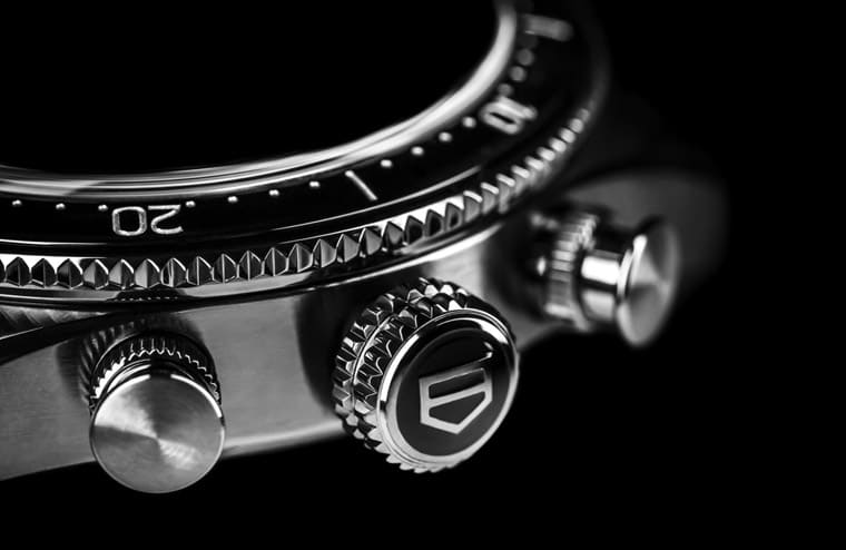 ▲計時按把和超大錶冠設計靈感都是來自泰格豪雅20世紀所創作的儀表板計時器。