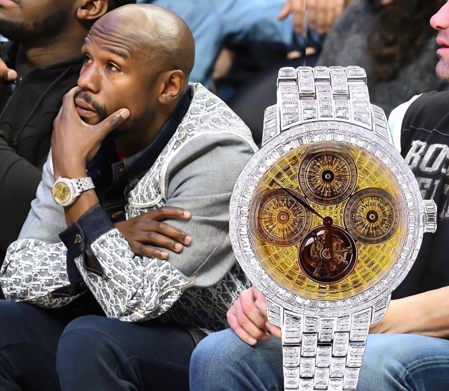 ▲梅威瑟特別幫愛錶拍了短片,雖然手錶的功能很複雜,但是視覺焦點很難不被滿滿的鑽石和彩色寶石吸引。Source:Instagram @floydmayweather